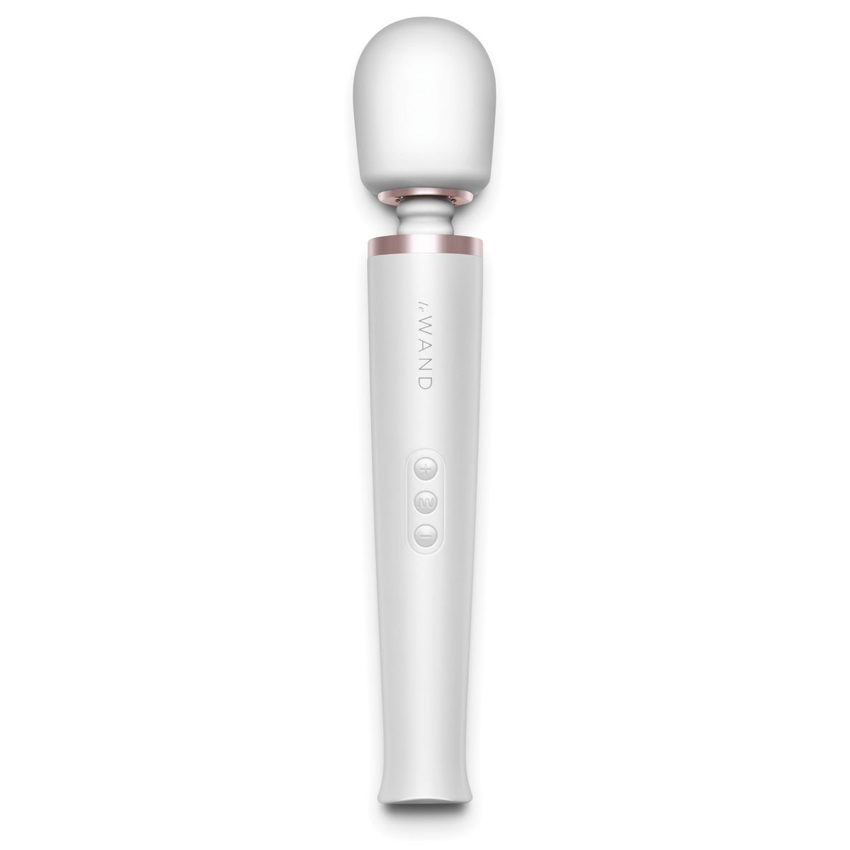 Le Wand is a powerful wand vibrator of great quality with an elegant white colour. The wand massager is wireless and lighter than standard wand vibrators. Le Wand is rechargeable using the included charging cable. The head is made of body safe silicone that feels soft on your skin. The massager has 20 vibration patterns and 10 vibration speeds for endless pleasure. Le Wand comes in a beautiful box and includes a manual, a charging cable and a practical toy bag.