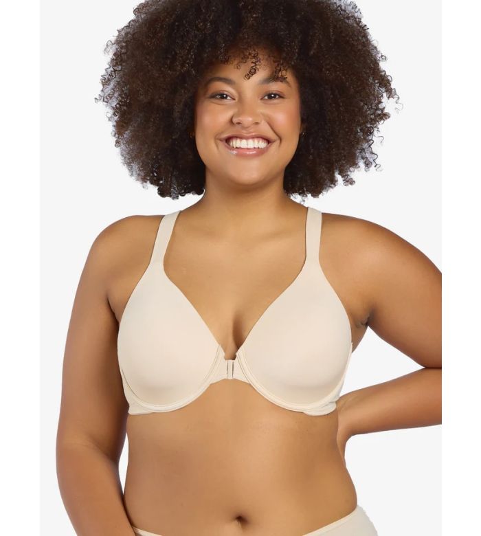- We’ve taken your favorite parts of a bra and used them to create one effortless style. This modern take on a classic t-shirt bra will give you the convenience of an easy front-closure while improving your posture with our supportive racerback design. Wear your new seamless Brigitte racerback bra under any tank or dress without worrying about your straps showing. You’ll look naturally lifted all day long.