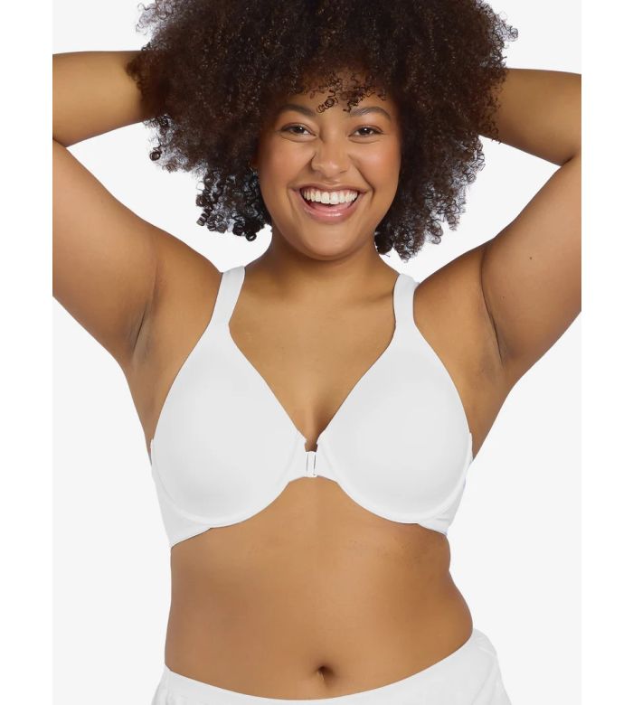 - Easy front-closure adds convenience