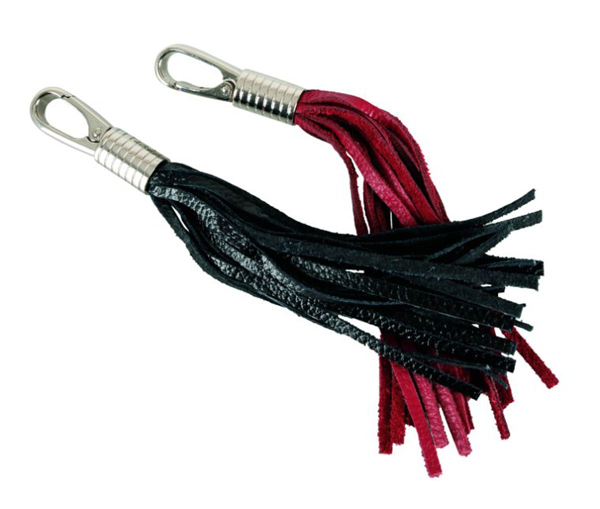 Smooth black leather straps with silver-coloured hook snap. Total length 19 cm. Material: leather, metal.