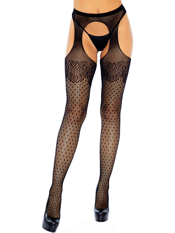 Take your sexy outfit to the next level with these gorgeous tights. The socks are divided and fit together with a hip holder which means that the socks sit comfortably in place. They have a polkadot-design with beautiful patterns around the thighs and down at the heel. In addition, the design will leave your most intimate parts naked. Combine with hot lingerie and your favorite dress or skirt.
