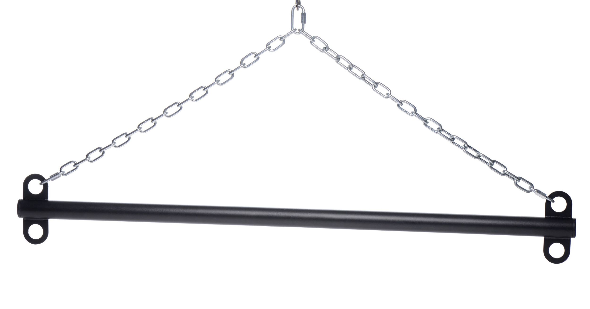 Measurements: length bar 91 cm (not adjustable). The diameter of the bar is 3.1 cm. The chains each are 50 centimeter long. The bar has a weight capacity of 158 kg, provided proper suspension tools are used.
