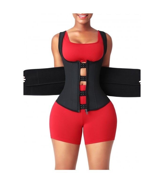 - Description: This ultra-high-quality black latex waist trainer vest features an exclusive “Double Velcro Belt” design and top quality YKK zipper. It trains the tummy muscles and features the best compression technology currently available on the market.