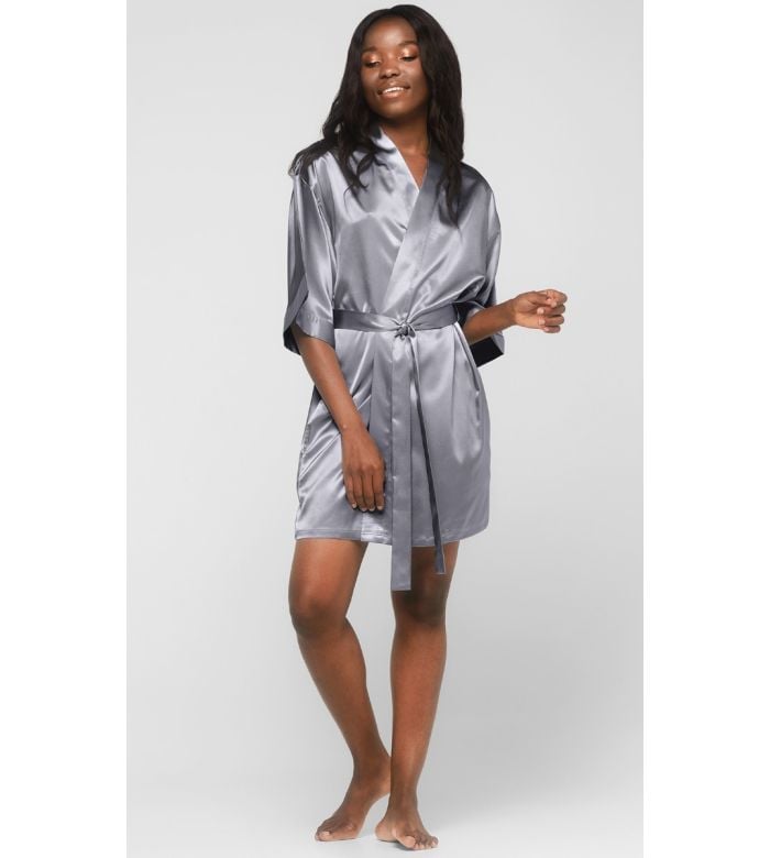 - Item: LM Brands Classic Gray Satin Kimono Short Robe LM9060-Classic Gray