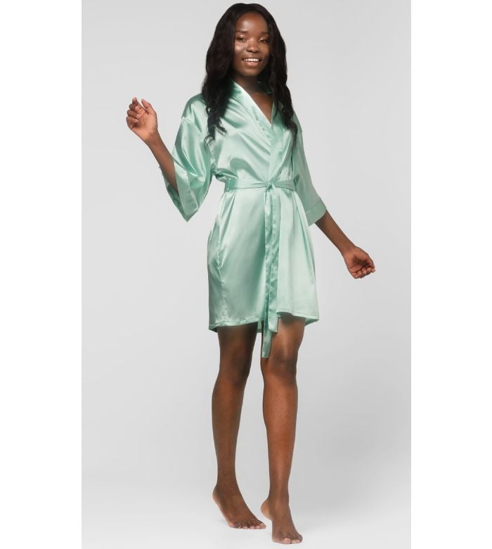 • Item: LM Brands Mint Green Satin Kimono Short Robe LM9060-Mint Green
