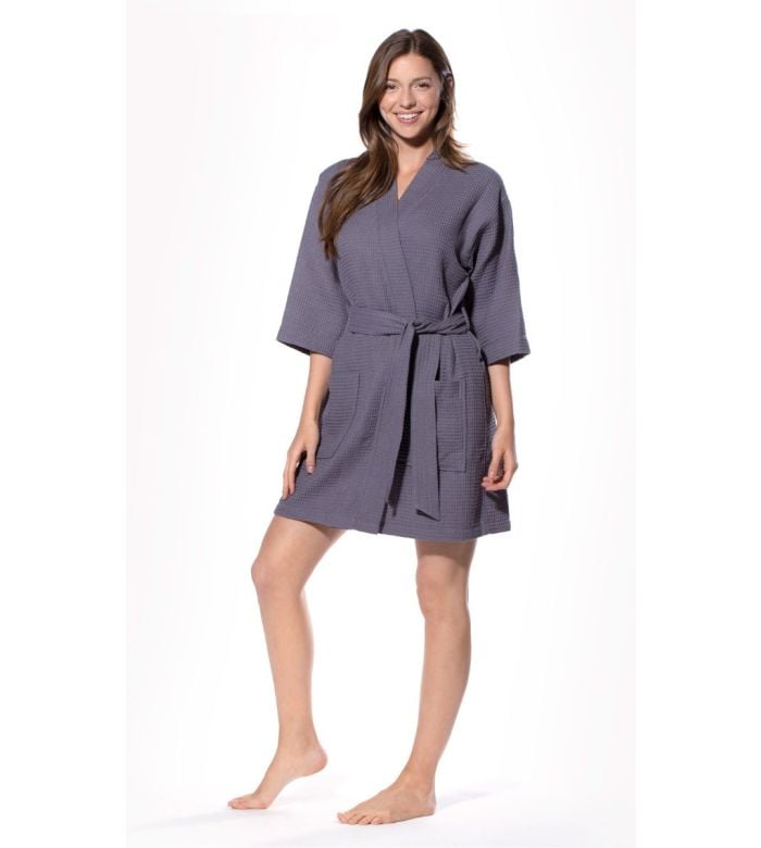 • The robe’s lightweight material features waffle stitching both inside and out for durability wash after wash — and each time you wash it, it gets even softer, so you feel the plush luxury for years to come. It’s machine washable in cold water, making it easy to care for, and the soft cotton robe dries quickly in the low heat. A waffle kimono-style robe for ultimate comfort, each garment includes a self-tie wrap belt, tailored collar, plus two large pockets.