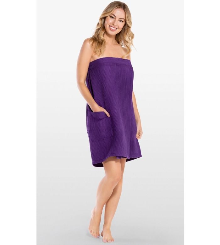 • Description: Perfect for a spa treatment or after a dip in the pool, our waffle body wrap is comfortable and lightweight. No matter where you wear it, you’ll enjoy its pleasant feel. The waffle body wrap is well-suited for lounging by the pool or during a relaxing facial or putting on makeup – stay comfortable and cool with ease. An included Velcro closure keeps it secure whether you’re sitting or standing, move freely without worry.
