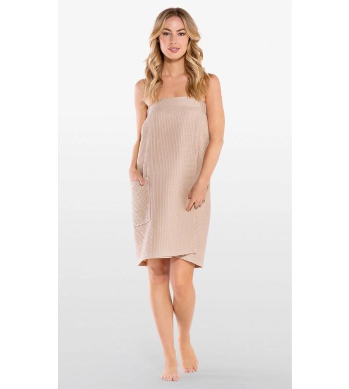 - Description: Perfect for a spa treatment or after a dip in the pool, our waffle body wrap is comfortable and lightweight. No matter where you wear it, you’ll enjoy its pleasant feel. The waffle body wrap is well-suited for lounging by the pool or during a relaxing facial or putting on makeup – stay comfortable and cool with ease. An included Velcro closure keeps it secure whether you’re sitting or standing, move freely without worry.