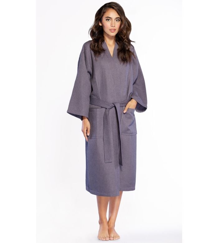 - Item: LM Brands Waffle Uni-Sex Kimono Charcoal Long Robe Square Pattern LM7023-Charcoal