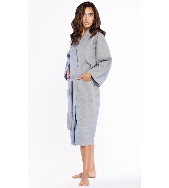 LM Brands Waffle Uni-Sex Kimono Gray Long Robe Square Pattern LM7023-Gray
