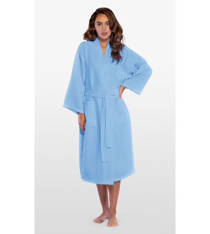 - Item: LM Brands Waffle Uni-Sex Kimono Serenity Blue Long Robe Square Pattern LM7023-Serenity Blue