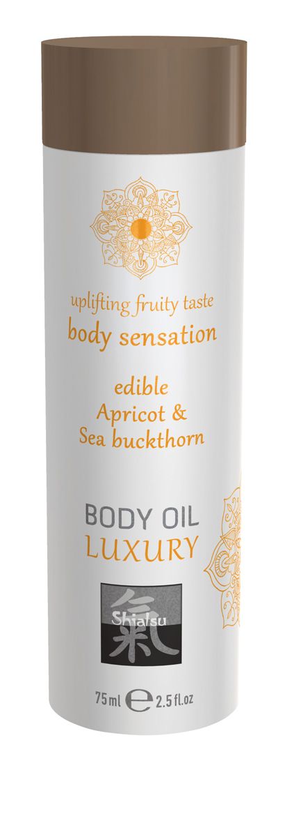 Treat yourself and your partner with this edible body oil by Shiatsu. The oil feels soft on the skin and has a lovely apricot and buckthorn scent and flavour. Perfect for a sensual massage!