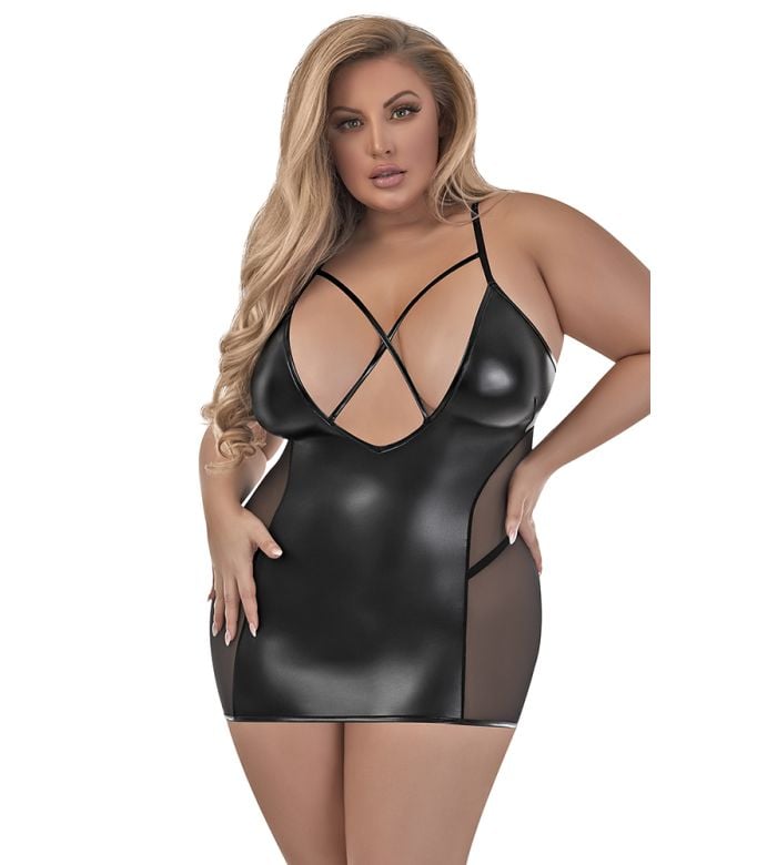 - Fabric Description: Four-way stretch wet-look faux leather combined with soft, conforming stretch mesh