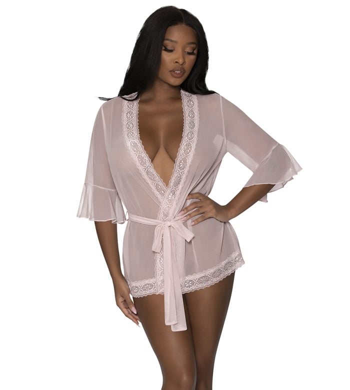 - Item: Magic Silk Flutter Sleeve Robe w/Lace Trim M281