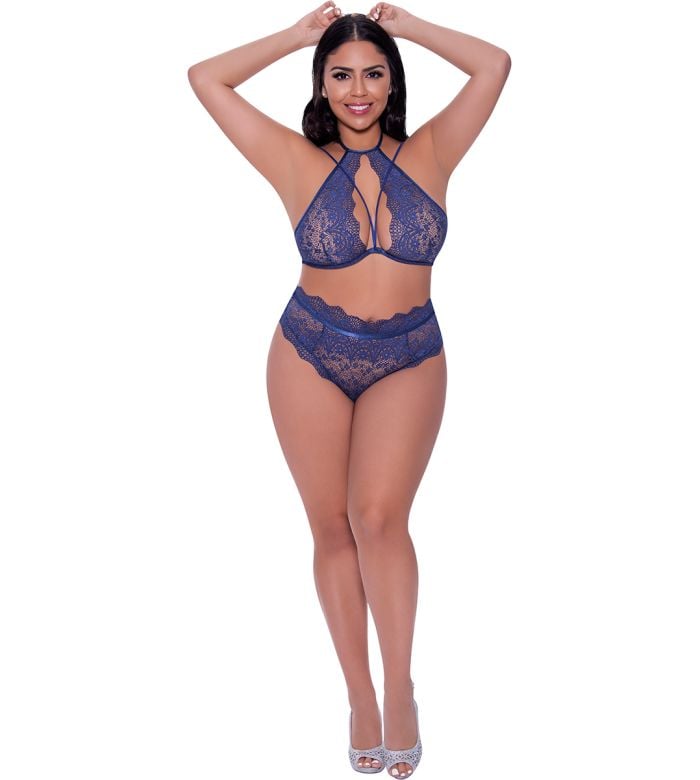 Magic Silk Halter & Lace Up Panty Set M345Q-BLUEBERRY