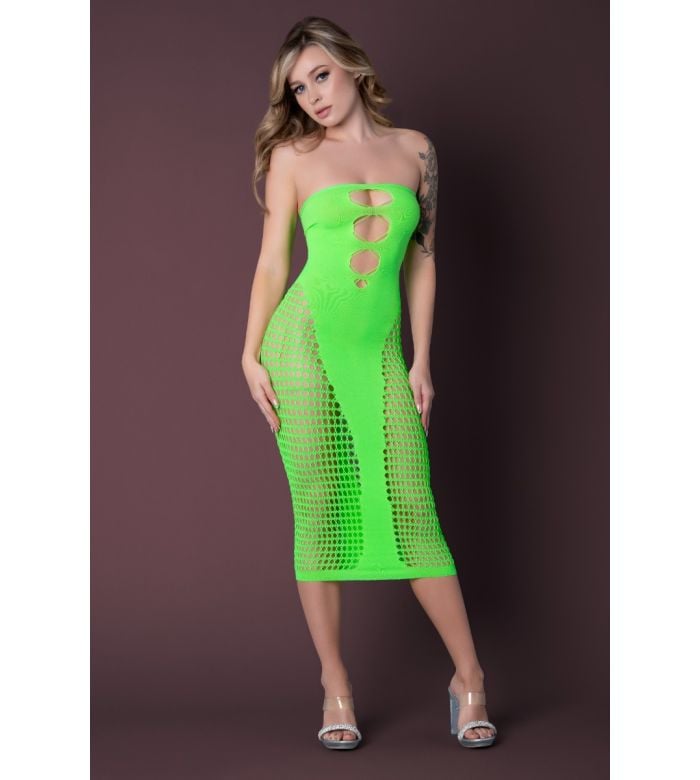 - Description: Elevate your wholesale seamless lingerie collection with the Seamless Gown by Magic Silk. This ultra-stretchy, figure-hugging gown features seductive front cutouts and bold fishnet side accents. Available in black light reactive neon lime, sunset ombre (yellow to peachy pink), and vibrant turquoise, offering eye-catching color options for playful customers.