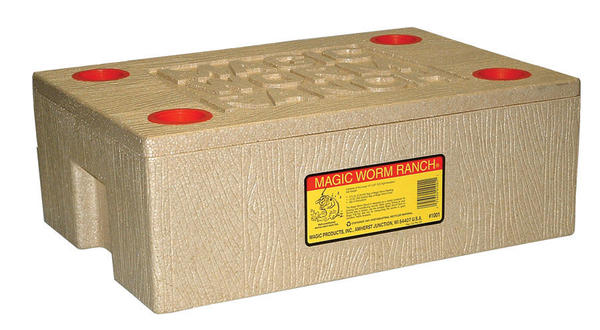 Ideal master storage container to keep hundreds of worms fresh and active. Complete kit includes 4 1/2 lb. bag of MagicĀ® Worm Bedding, 12oz. bag of worm food and instructions. Whether you harvest your own worms or buy them in bulk, the Ranch will keep them fishing ready for your next trip.