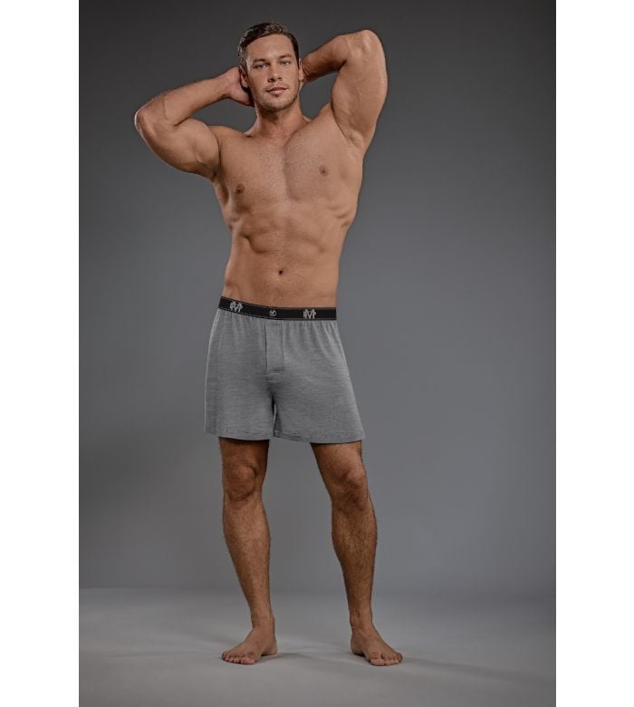 - Description: From the Bamboo collection by Male Power, this style includes: A boxer short featuring a peek-a-boo button fly, branded plush elastic waistband, and tone on tone plush elastic trim while providing thermal control, moisture wicking, and antibacterial properties.