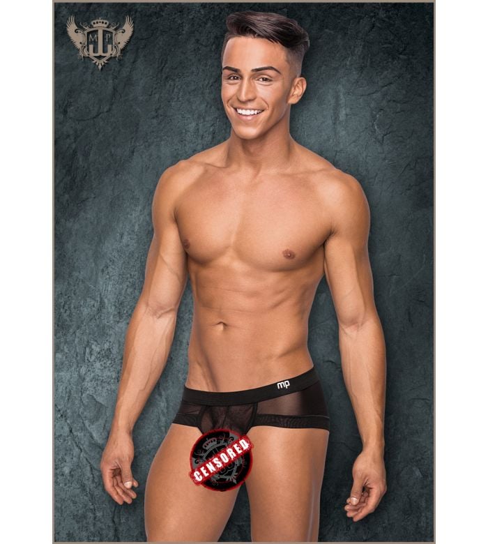 • Description: Micro mini short, low rise waist, ultra high cut legs, plush cotton waistband, stamped logo, shaft pouch
