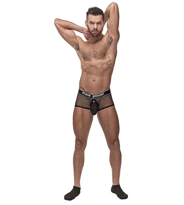 - Description: From the Cock Pit Net collection by Male Power, this style includes: A Mini Cock Ring short featuring short cut legs, a detachable snap off pouch revealing a plush elastic C-ring and a 1 1/2 ” satin finish branded waistband.