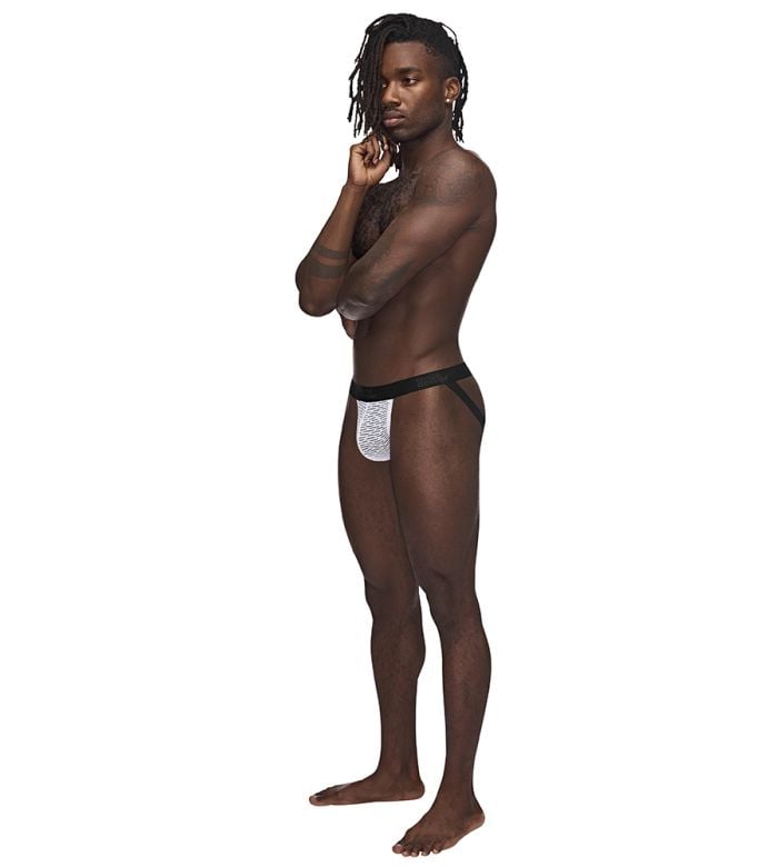 - Description: From the Sneak Peak collection by Male Power, this style includes A strappy ring jock featuring a contoured comfort pouch, one-inch plush elastic straps, adjoining nickel-plated rings, and a branded embossed plush elastic waistband.