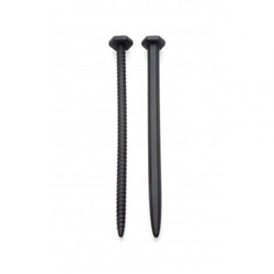 Both sounds are shaped like heavy-duty hardware, tempting you with a smooth, hexagonal nail and a spiral-textured screw. The flexibility and silkiness of the material ensure a comfortable insertion as it conforms to your inner curves.