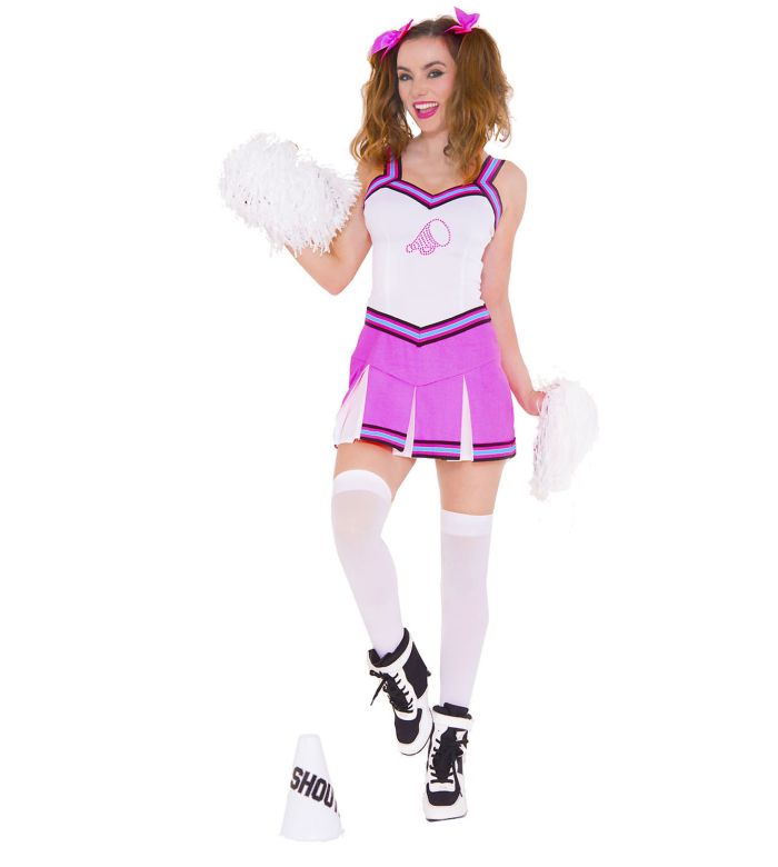 - Description: 3 pc. Front slits cheerleader uniform Includes: bow clips and pom poms