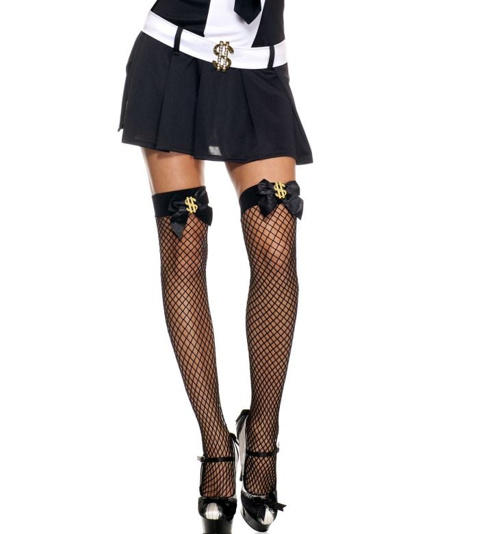 - Item: Music Legs Dollar Applique Spandex Diamond Net Thigh Hi ML4999