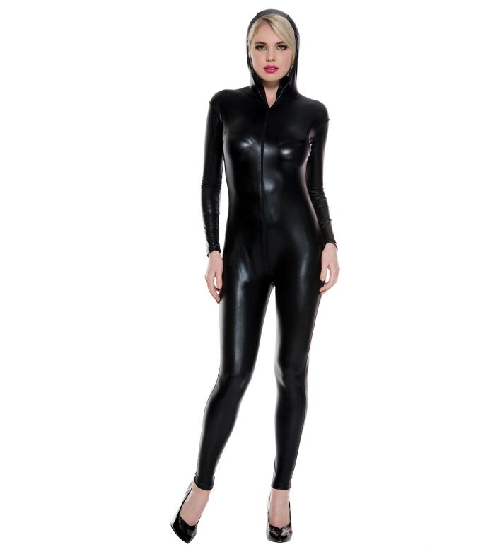 - Item: Music Legs Full Body Wet Look Zip Up Bodysuit With Attached Hood ML70772
