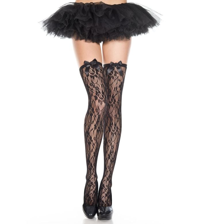 - Item: Music Legs Lace Spandex Thigh Hi With Satin Bow ML4516