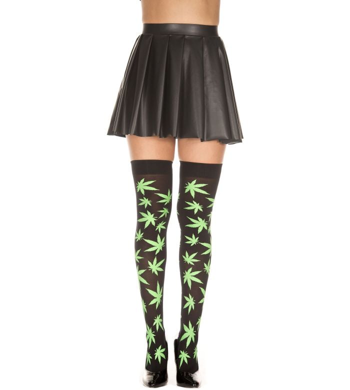 Music Legs Leaf Print Thigh Hi ML4271