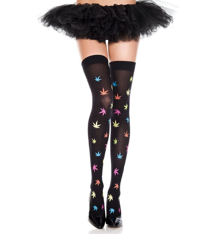 - Item: Music Legs Multicolor Print Leaf Thigh Hi