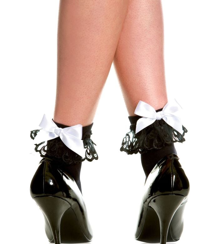 - Item: Music Legs Opaque Lace Ruffle Anklet With Satin Bow ML546