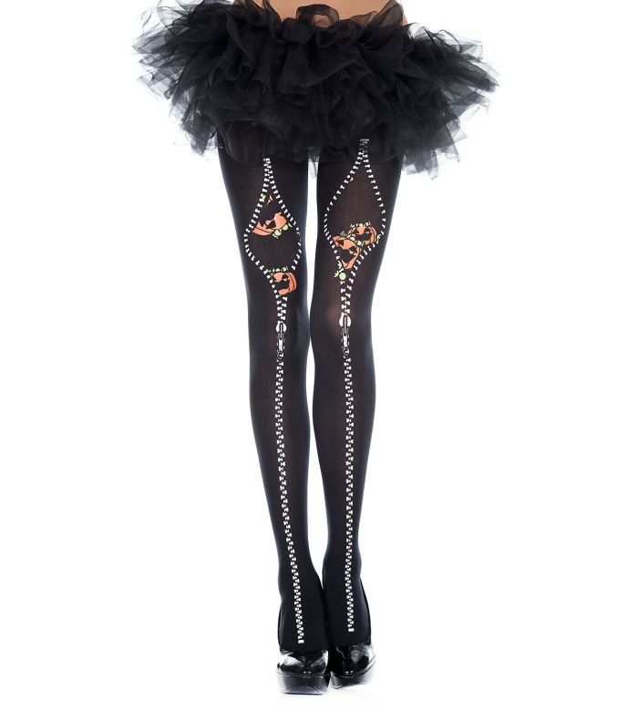- Item: Music Legs Pumpkin And Flocked Zipper Print Tights ML37343