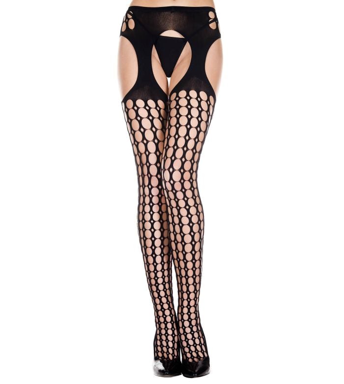 - Item: Music Legs Round Holes Pattern Suspender Pantyhose ML913