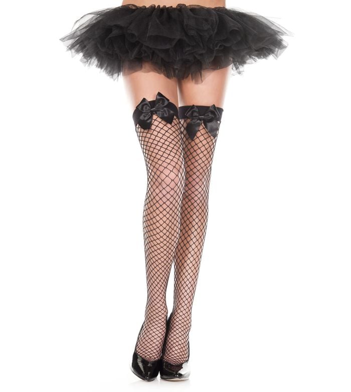 - Item: Music Legs Satin Bow Spandex Mini Diamond Net Thigh Hi ML4830