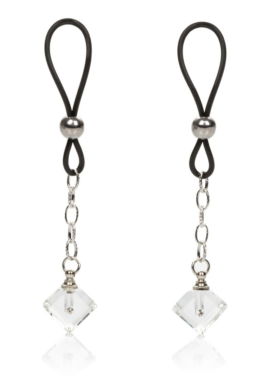 Push sensation to the next level and enjoy teasing nipple play with the Nipple Play® Non Piercing Nipple Jewelry Crystal Gem; Explore elevated sensation with the 2 fully adjustable nipple jewel adornments, pliable cinch and sparkling crystals. One glance at the sparkling crystal jewels will inspire frisky fantasies and make you lover’s appetite water; Inspire feelings of sensuality, confidence and arousal when you tighten the slip cinch. The silicone cinch design allows playful beginners and fetishists alike to enjoy dazzling body jewelry; Tighten the adjustable cinch tension for intensified teasing and elevated pleasure. With the teasing cinch stimulation and increased blood circulation, you can look forward to amplifying nipple sensitivity and intensify overall arousal; These easy-to-use nipple teasers are great for him or her. The two adjustable silicone cinch loops are made with adjustable nickel-free iron chain and Silica jewels.
