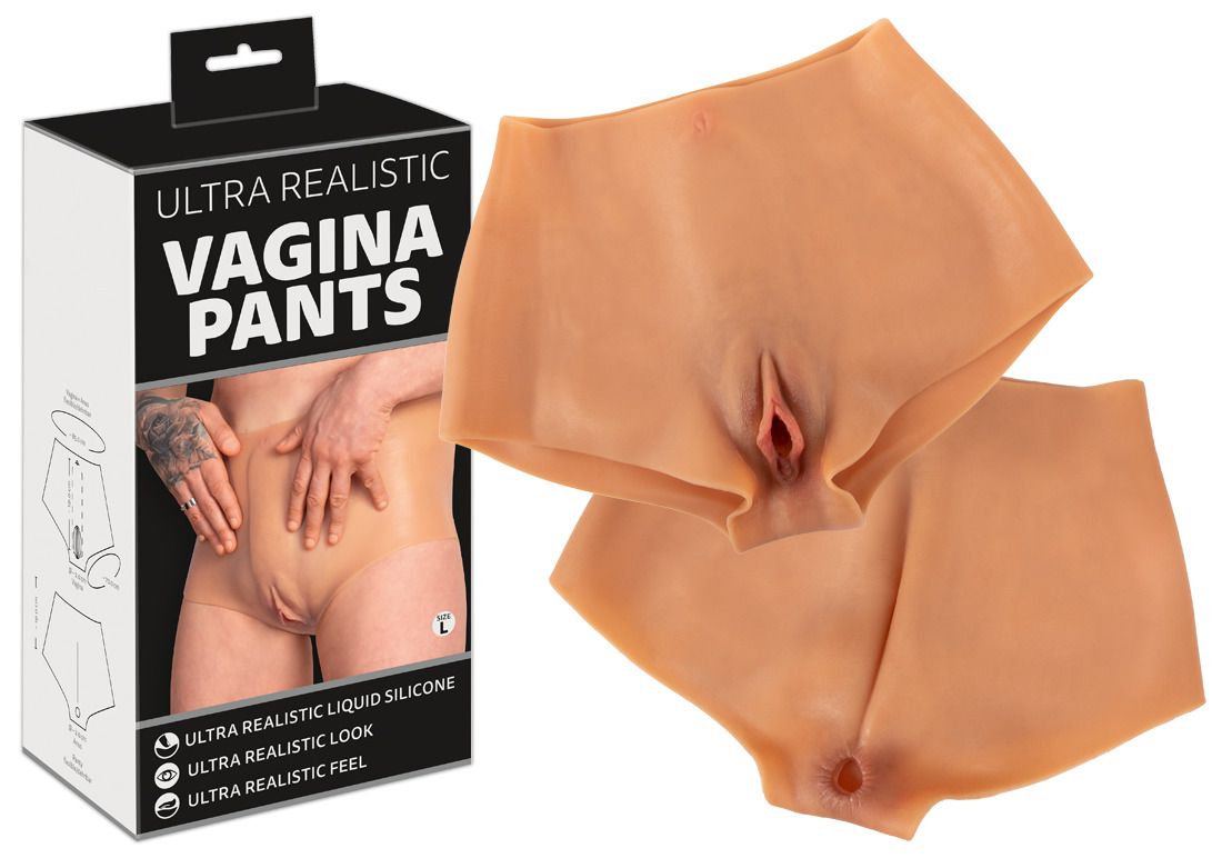 Ultra Realistic Vagina Pants by You2Toys with absolutely realistic vulva and integrated vagina. The belly button, buttock crease and stretchy anus opening complete the lifelike look. The penetrable vagina is pleasantly stretchy and equipped with stimulating nubs and grooves on the inside.