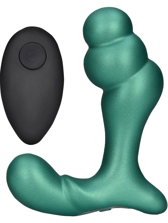 This metallic green dual motor prostate vibrator is designed to take you to intense orgasms and new levels of pleasure. The innovative shape with stacked beads at the top targets the prostate while the base stimulates the pelvic floor.