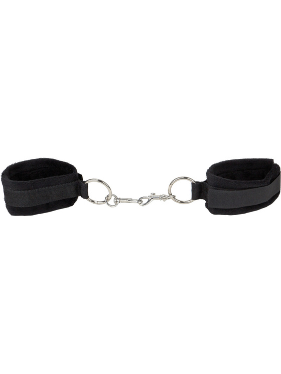 The shackles are adjustable with velcro to provide the perfect fit. This also gives you the option of using them around wrists or ankles. Between each shackle is a metal ring to be able to fasten them together with the included carabiners.