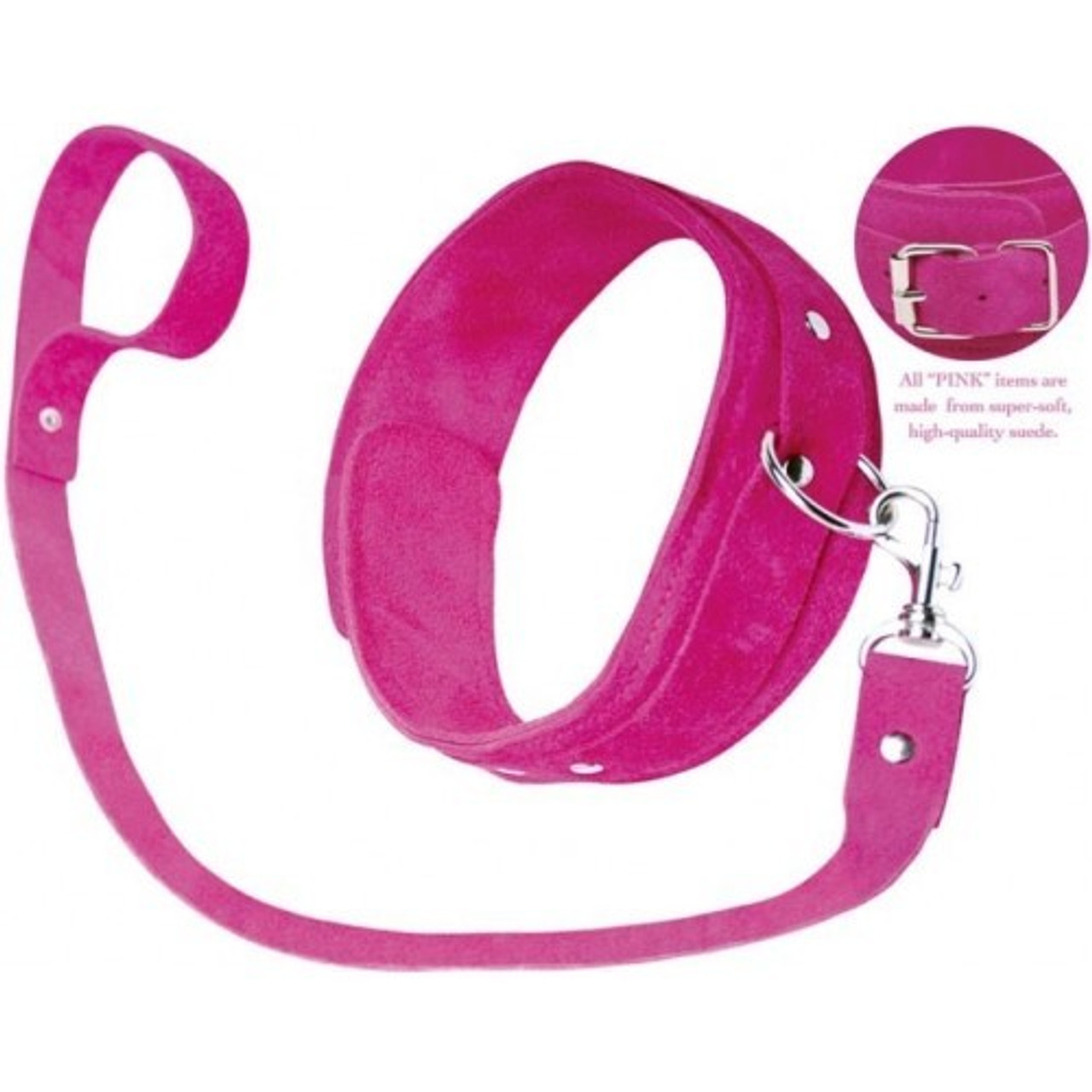 Pink Suede Collar with Buckle Closure and Leash