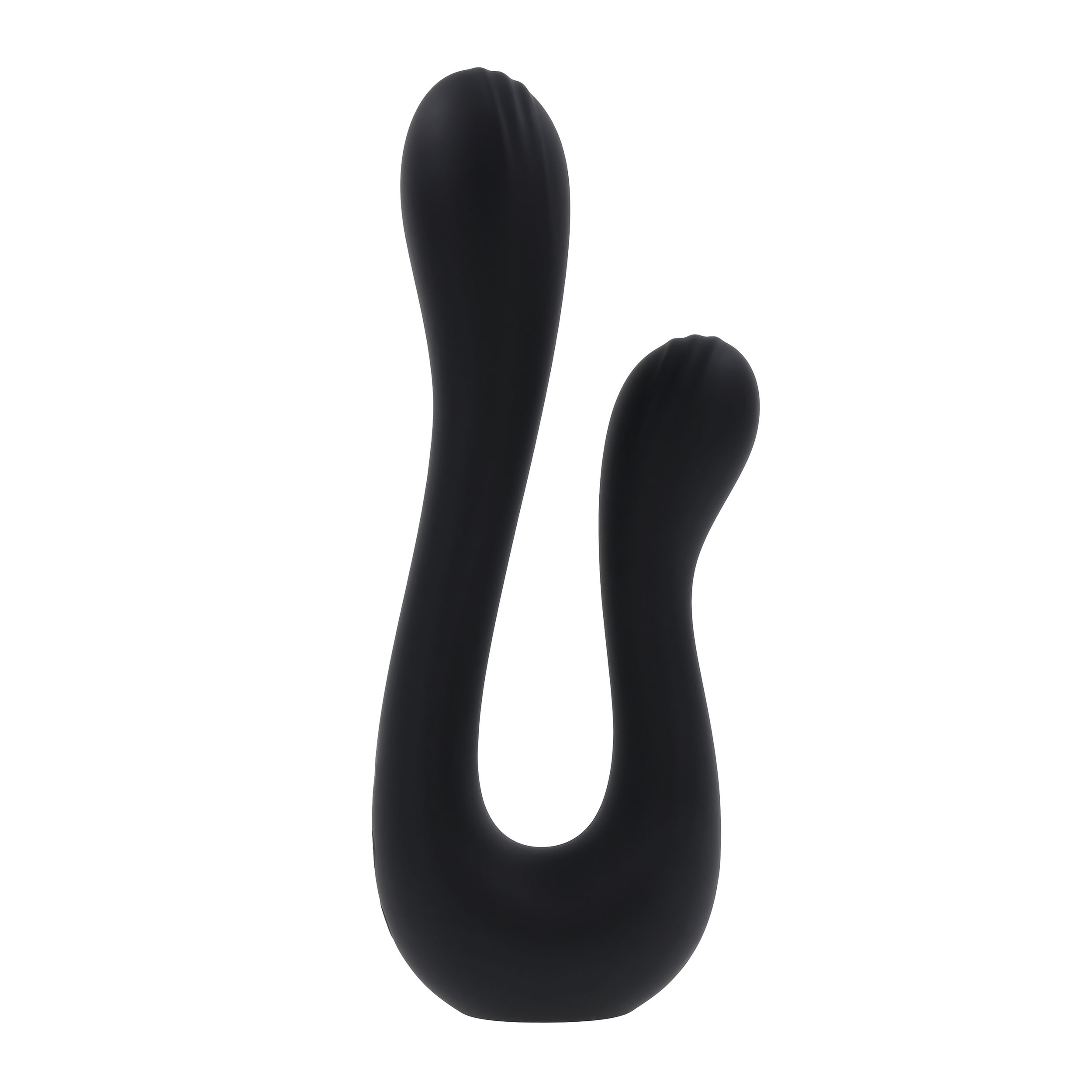 Pleasure has never been so elegant. The Swan, part of the Multi Play series, has two gently curved and flexible shafts that move with your body. The smaller shaft stays in constant contact with the clitoris or perineum, while the longer shaft moves within you. Enjoy the power of 10 vibrating speeds and rhythms in each shaft, made even more stimulating by the bulbous, textured heads. A unique flat base allows the toy to stand conveniently upright on your nightstand. After use, clean easily with lukewarm water and a toy cleaner.