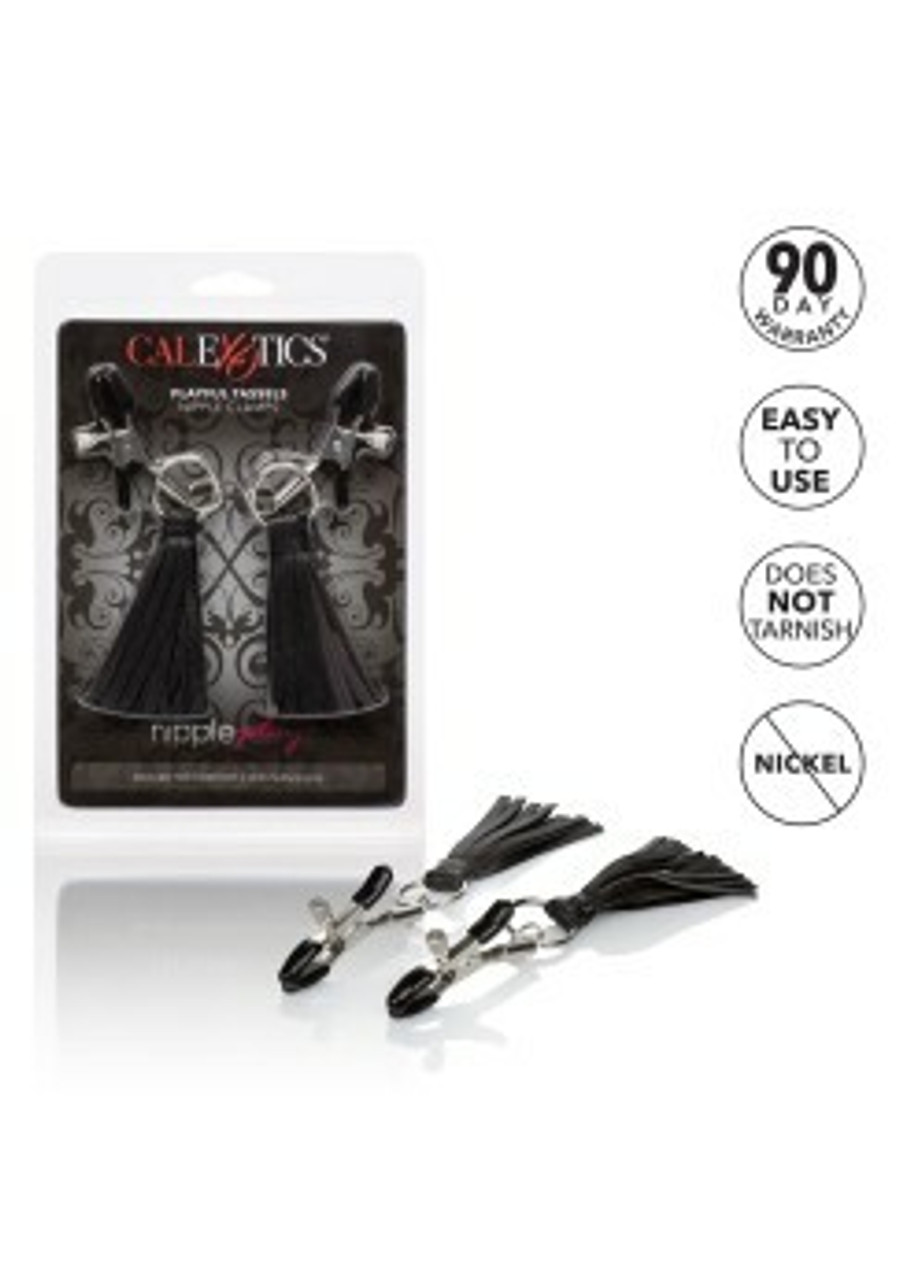 Explore a stylishly kinky side and push the boundaries of painful pleasure with the Nipple Play® Playful Tassels Nipple Clamps. Experienced fetishists and blushing beginners can indulge in the sensuous nipple play with this teasing tassel set. While the soft vegan tassels tickle your lover’s skin for spine-tingling teasing, the adjustable nipple clamps dial up the intensity with a twist. The soft PVC pads and adjustable tension clamps let you embrace the thin line between pleasure and pain for a sinfully sensational experience. Bring even your teasing erotic dreams to life and dive deep into your most adventurous desires with this enticing nipple tassel set.