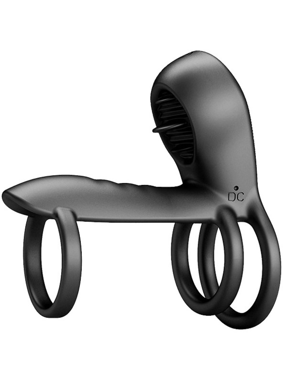 The larger ring is placed around both the penis and scrotum while the two other rings are placed around the penis. The vibrating part offers 12 different vibration-modes and will stimulate your entire shaft and your partner’s insides during penetrative sex. In addition, the three licking tongues will stimulate your partner’s clitoris – choose between 12 different licking positions.