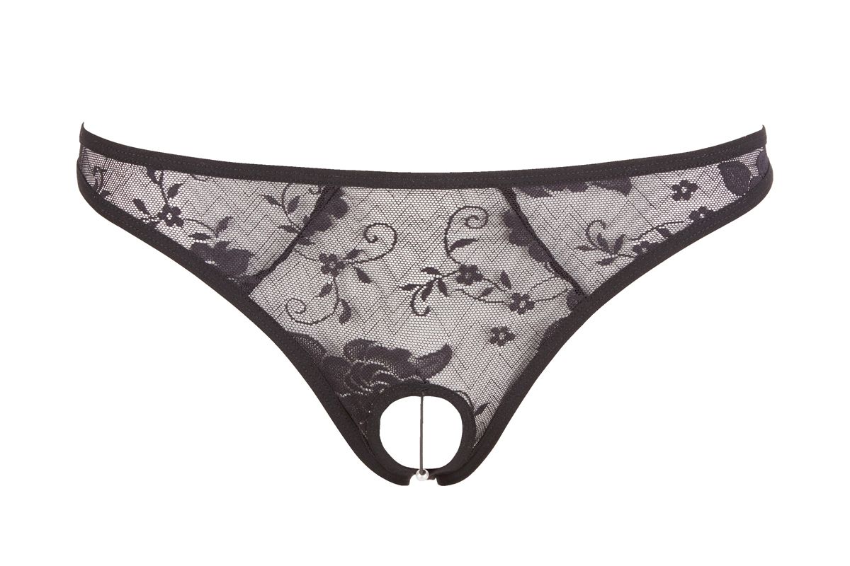 The lace rio string with open crotch has a surprise for you! Through the open crotch runs an elastic band with a strategically placed pearl that gently pushes against your special spot.