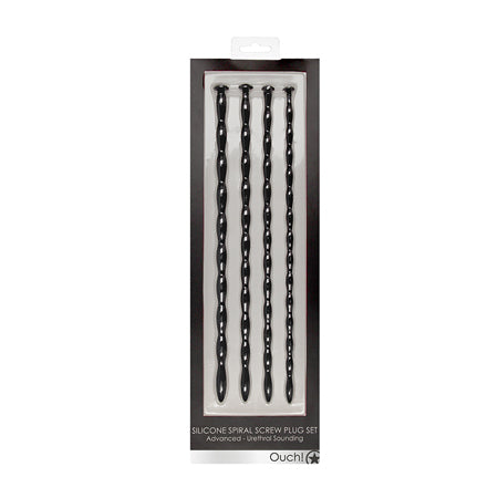 Shots Ouch Advanced Urethral Sounding Silicone Spiral Plug Set – Black