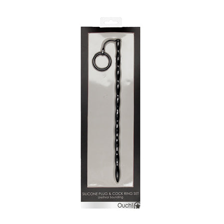 Shots Ouch Urethral Sounding Silicone Plug & Cock Ring Set – Black