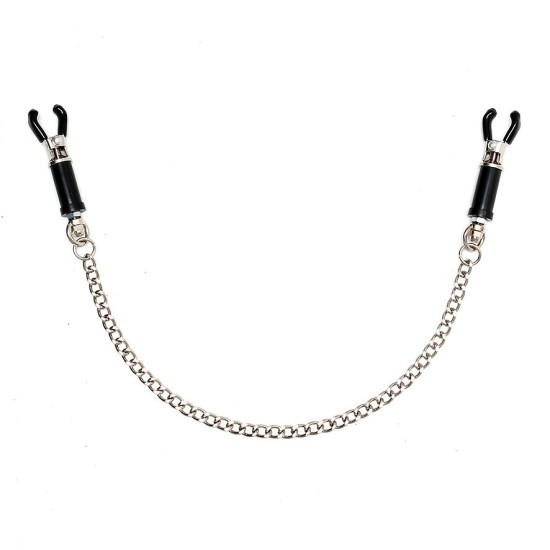 Siver nipple clamps and chain that are adjustable by simply twisting the clamp