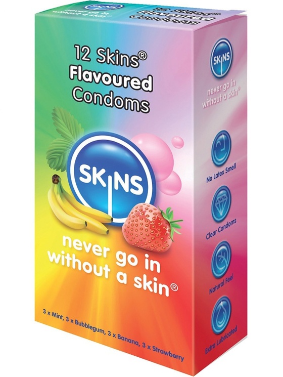 Skins Flavored contains condoms with four different flavors for a varied and tasty experience at every opportunity. Spice up your sexlife with wonderful flavors combined with safe protection.