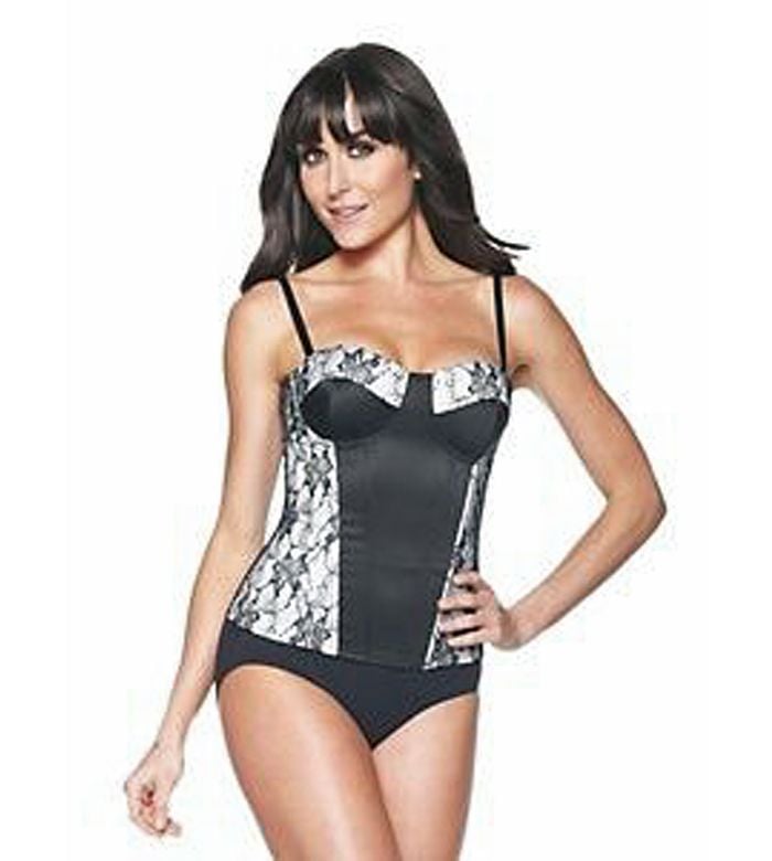 - Description: From world famous celebrity star Jill Zarin – “Real Housewives of New York”. This beautiful Skweez Couture label underwired boned corset is sensational in look and feel. Features include a black silky satin fabrication bodice paired with elegant cream lace trim for slimming and flattering look. Ruffled red trim on top of cups allows for corset to also be worn as outerwear. Looks great under a blazer or be even more dazzling by itself with a pair of fashion jeans! Black hidden zipper back. Adjustable straps are detachable. Padded cups for smooth uplifting look. Ultra high workmanship, details and design make this one of the best corsets we have ever offered at this low price.